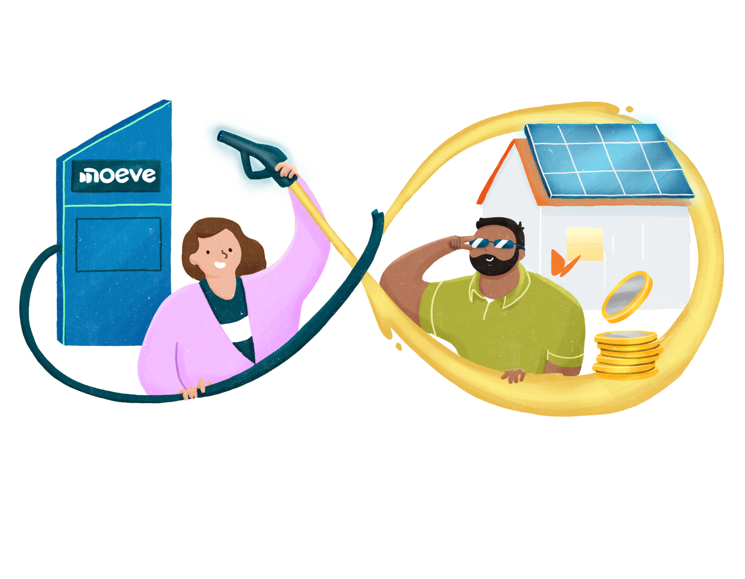 Coa enerxía que non consumas das túas placas solares e cada vez que repostas con Moeve Gow, podes aforrar na túa factura de enerxía.